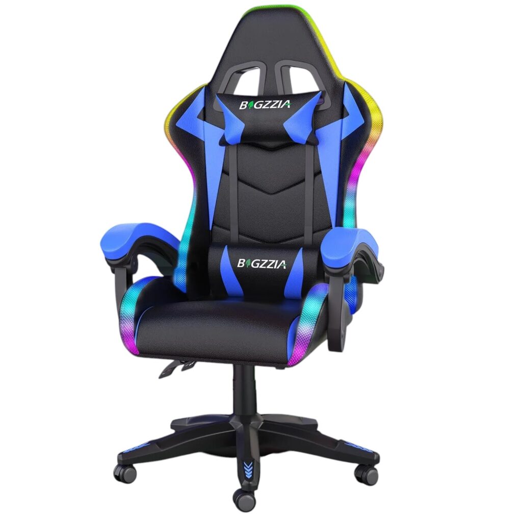 Ergonomic Gaming Chair with LED Lights, Headrest, and Lumbar Support